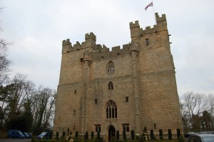 We tried stopping at a Temple to Mithras that was supposed to be along the B6318, but when we got to the parking area, the spotty drops from the sky had become much more frequent, and we just didn’t feel like venturing out into that, even with the £6 umbrella we had purchased in Windsor. So, from the parking area at Brocolitia, we headed to our lodging for the evening, a hotel in a 14th century castle!