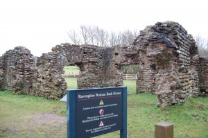 After lunch, we walked a little over a half a mile to the Roman Bath House which was down a well maintained gravel road. The bath house actually was outside the fort called Glannaventa by the Romans. The ruins of the bath house are the only thing that remain above ground, although the ground contours of the fort ramparts appear to still be visible.
