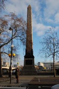 But the going on the Big Bus was not exactly the swiftest; London is very congested, and we needed to watch our time. So after about an hour and a half of being on the bus and doing some mental calculations, we decided to get off the bus in an area called “Strand” to grab a bite to eat. We had a delicious little lunch at a place called Crown Cafe-Bar, then we walked towards the River Thames so we could get down to Cleopatra’s Needle, a nearly 3500 year-old obelisk with an interesting history.