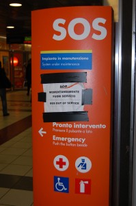 Rome has a simple subway system. The two lines cross at the Termini train station. Within the station area, there is a stand called an SOS stand that you can use to request assistance or report an emergency. We also saw these on the highway from the airport into the city center.