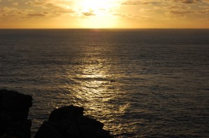 As we drove, it started to become obvious that we have terribly misjudged the time needed to drive some of these distances, and some things that are on the itinerary are just not going to be able to be seen. St Michael’s Mount was seen from about five miles away. We never got to Penzance, as we wanted to get to Land’s End before sunset. Which we did manage to do. It had beautiful scenery, but it was fairly chilly and breezy there, so we didn’t stay for the actual sunset – we left about 20 minutes before the sun went down so we could at least get part way to St Ives before it was completely dark.